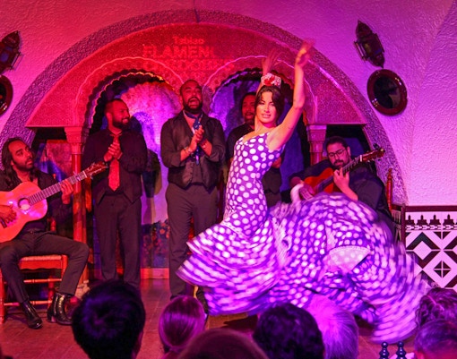 Los Tarantos, nestled in the lively Plaça Reial, is one of Barcelona’s oldest tablaos and a true emblem of its nightlife. Opened in the early 1960s, it became a pioneer in offering daily flamenco performances, introducing countless locals and tourists to the art form. Within its intimate space, legends of dance and song have graced the stage, infusing every performance with raw, unfiltered emotion. The tablao’s enduring appeal lies in its atmosphere, simple, electric, and deeply personal, capturing the spirit of flamenco as it was meant to be experienced: close, honest, and passionate.