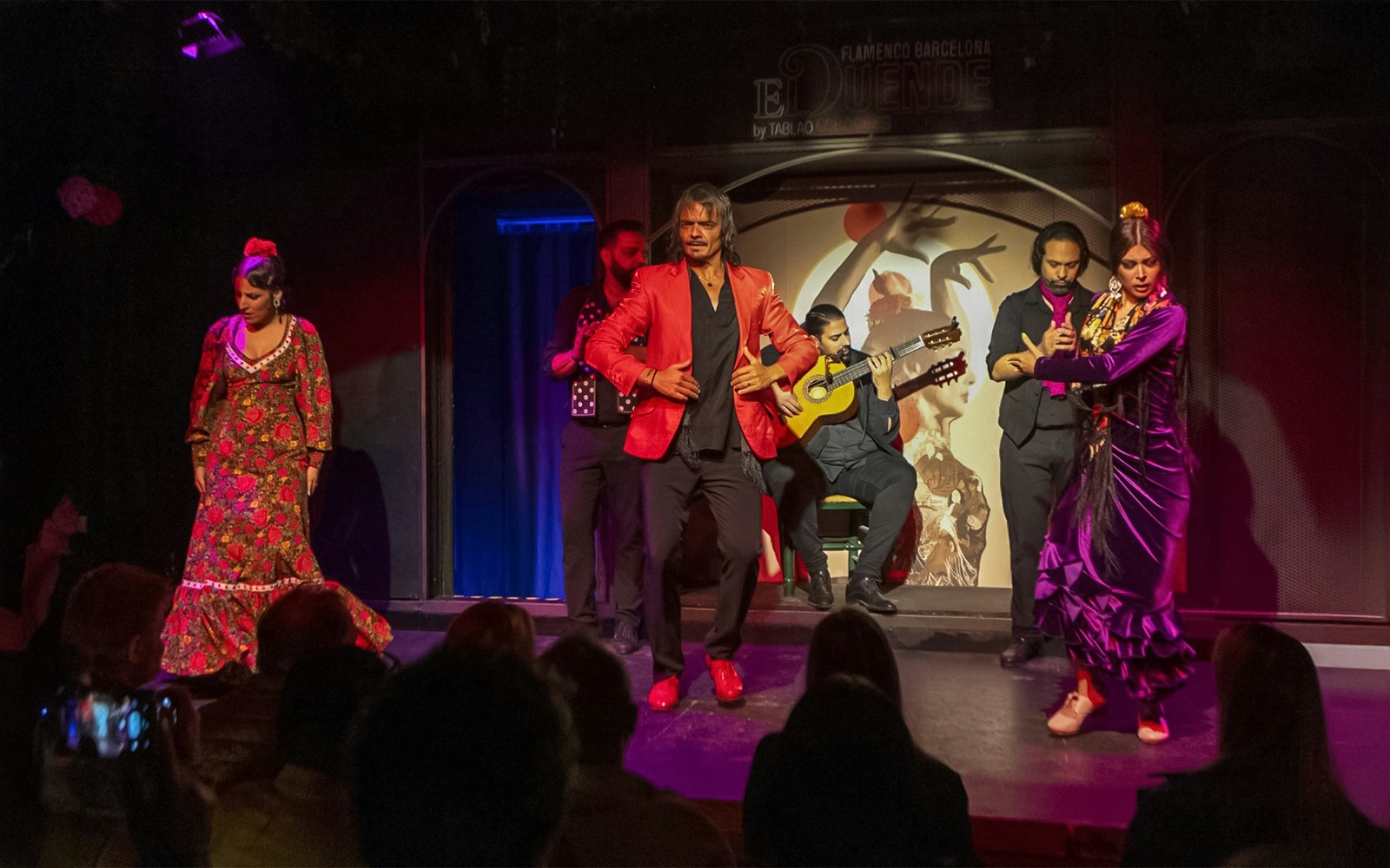 Flamenco hits with fierce precision where dancers stomp with measured intensity, their footwork echoing across the room. Vocals rise and fall with raw emotion, accompanied by guitarists weaving complex rhythms. Every movement, from a subtle hand gesture to a dramatic turn, tells a story steeped in passion and history, drawing the audience deep into the performers' world.